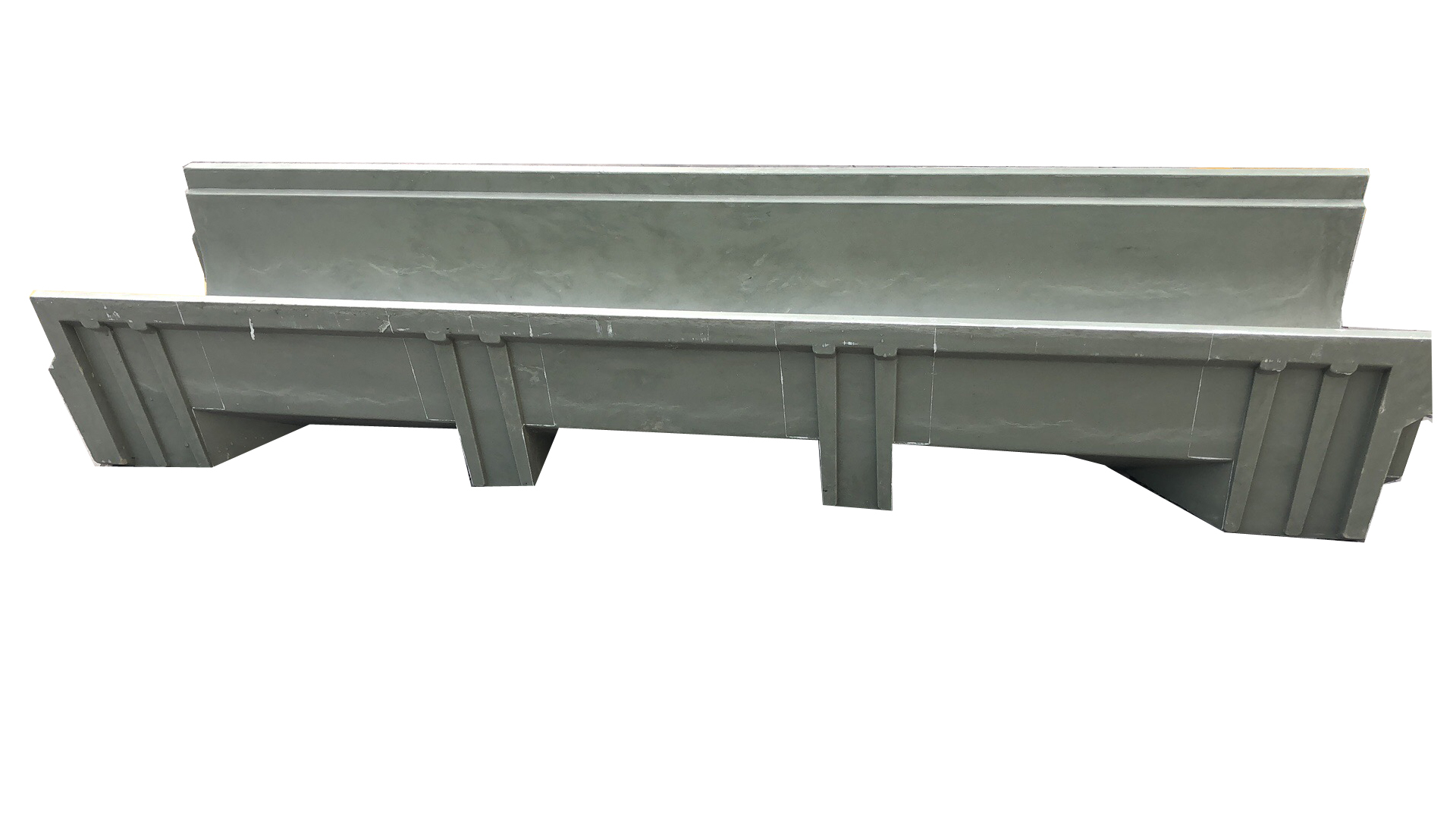 從出水口安裝起,先固定底部,以方便側(cè)面混凝土的澆筑。S部分根據(jù)設(shè)計(jì)圖要求選擇合適尺寸。排水溝完成面建議比兩側(cè)地面完成面低3-5mm,最大高度不得超過地面完成面高度。預(yù)先安裝好選定的蓋板,防止來自混凝土結(jié)構(gòu)的壓力而導(dǎo)致溝體變形。同第二步,側(cè)面的混凝土結(jié)構(gòu)也需加固(承重等級E600及以上的需要配加強(qiáng)筋)。